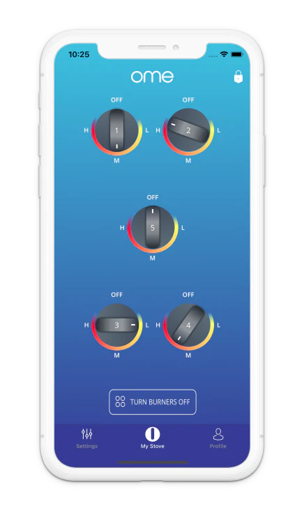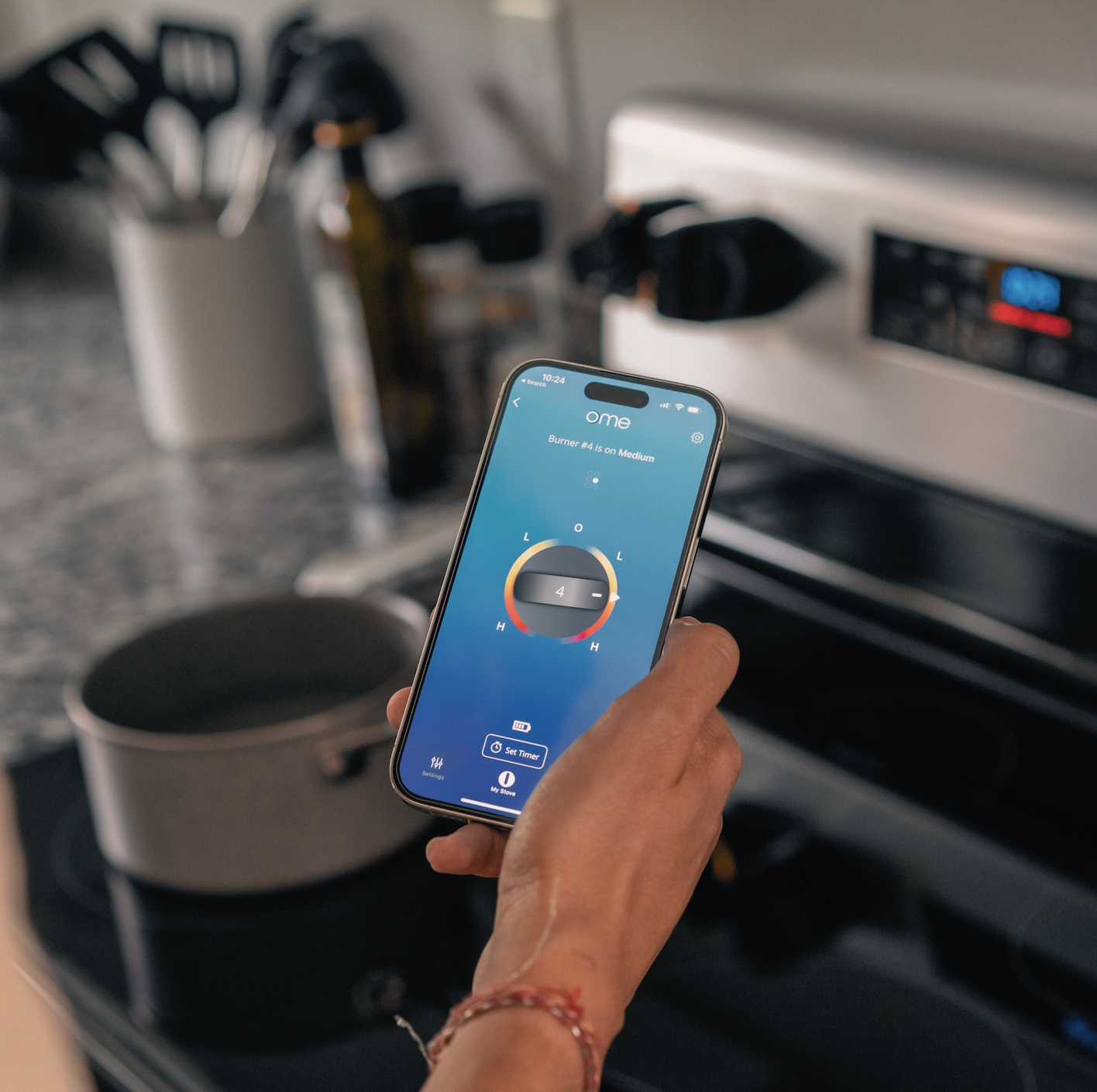 Or use the Ome app to adjust your stove up, down or off, even if you're not in the room.