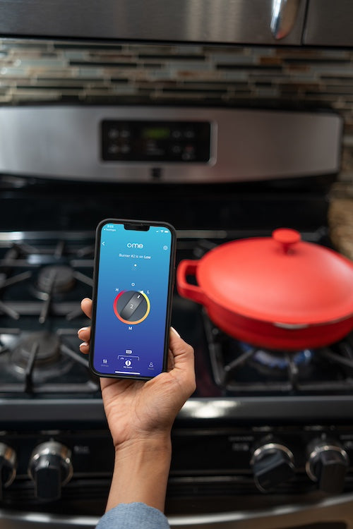 Or use the Ome app to adjust your stove up, down or off, even if you're not in the room.