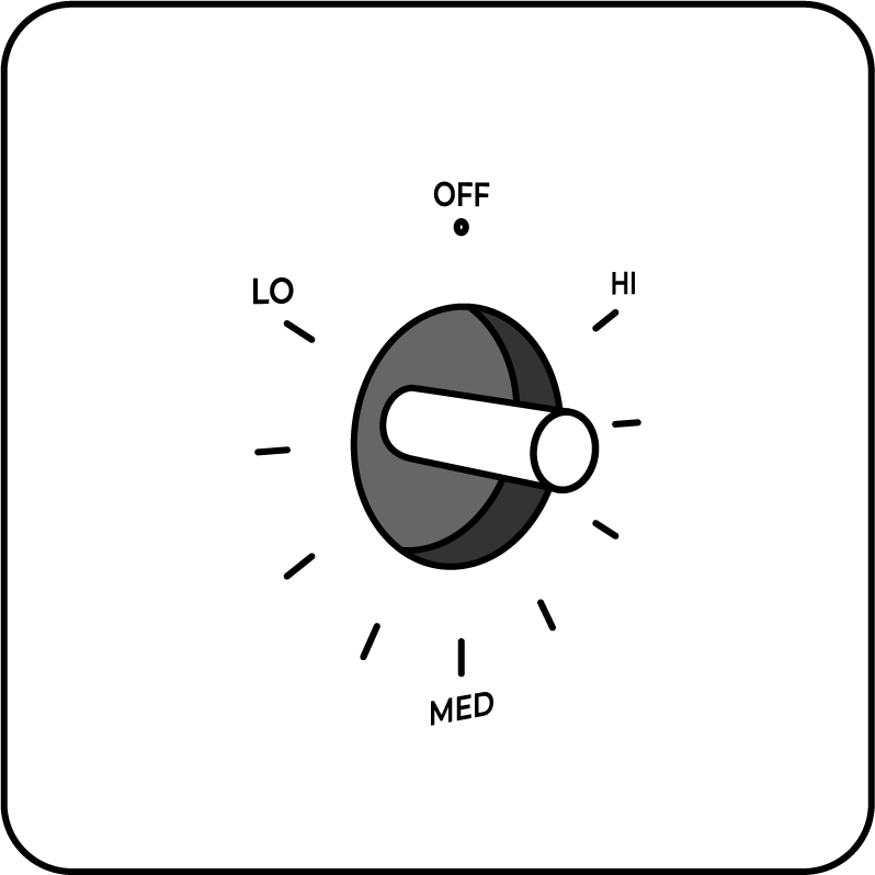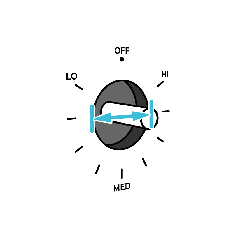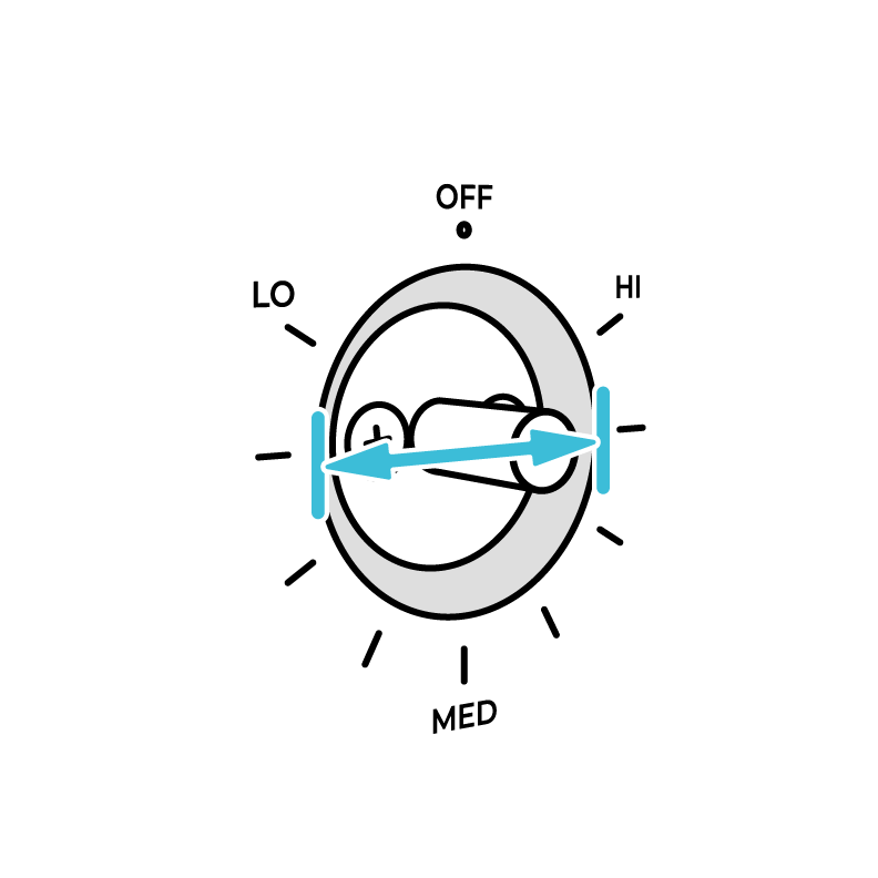 Push and turn your Ome Knob just like any other stove knob.